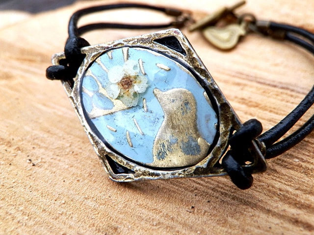 Satu*Satu メタルカフ・レザーフラワー デイジー
